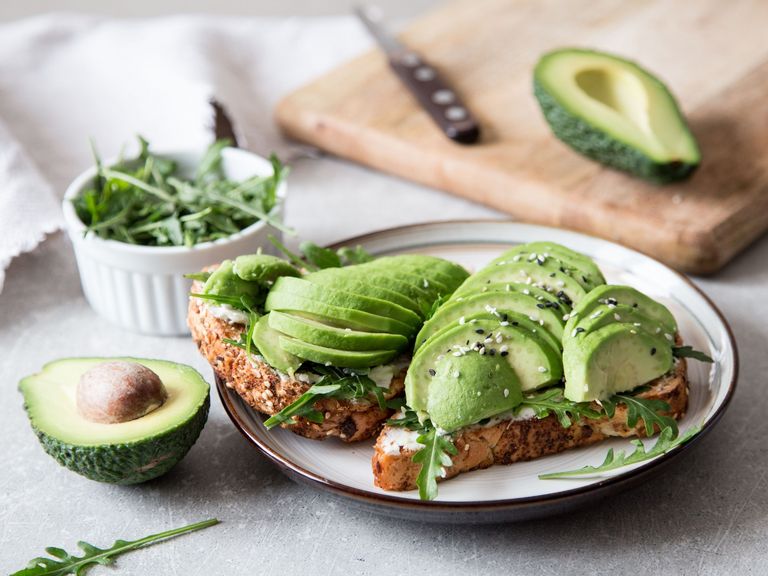 - Gesunde Fette: Eine Avocado besteht zu etwa einem Viertel aus Fett. Dadurch ist sie sehr kalorienreich. Es handelt sich dabei jedoch um einfach ungesättigte Fettsäuren. Diese wirken sich positiv auf Ihr Herz-Kreislauf-System aus und unterstützen dabei, den Cholesterinspiegel zu regulieren.