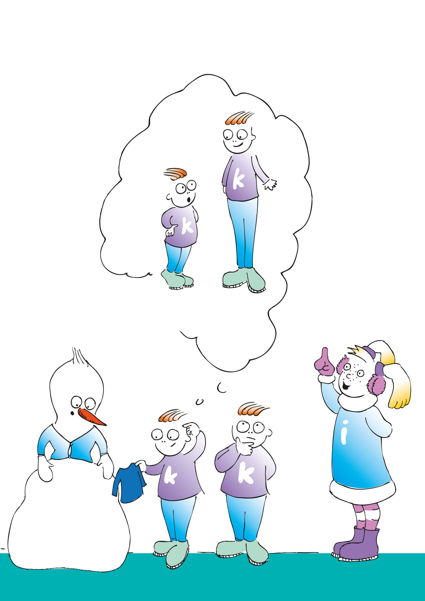 "Also ich finde das toll!", sagte Karl. "Ich freue mich schon richtig darauf, ganz groß zu werden!" "Dafür musst du aber auch gesund essen, zum Beispiel viel leckeres Obst und Gemüse. Aber ganz egal, wie groß oder klein jemand ist: Wichtig ist vor allem, ob er nett und hilfsbereit ist. Eben ein guter Freund. Kommt, lasst uns endlich unseren Schneemann bauen!"
